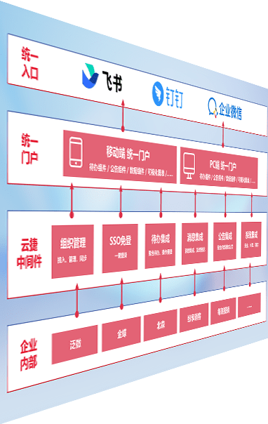 对协作平台提供支持服务,,,支持企业应用与协作平台对接,,包含组织同步、、、、消息集成、、待办集成等。。。支持目前主流的协作平台:钉钉、、、、企微和飞书。。